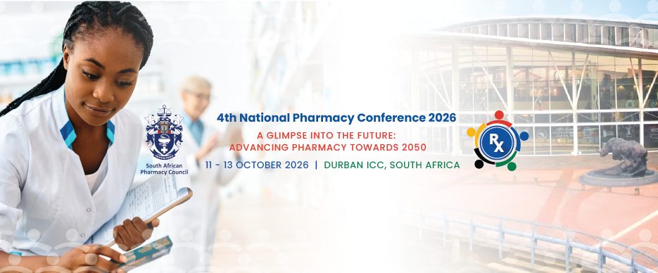 Announcement: The South African Pharmacy Council (SAPC) is pleased to announce that the long-awaited 4th National Pharmacy Conference will take place on 11-13 October 2026 at the Inkosi Albert Luthuli International Convention Centre Complex (commonly known as “Durban ICC”) in Durban, KwaZulu-Natal. The conference will be held under the theme: “A Glimpse into The Future: Advancing Pharmacy Towards 2050.”